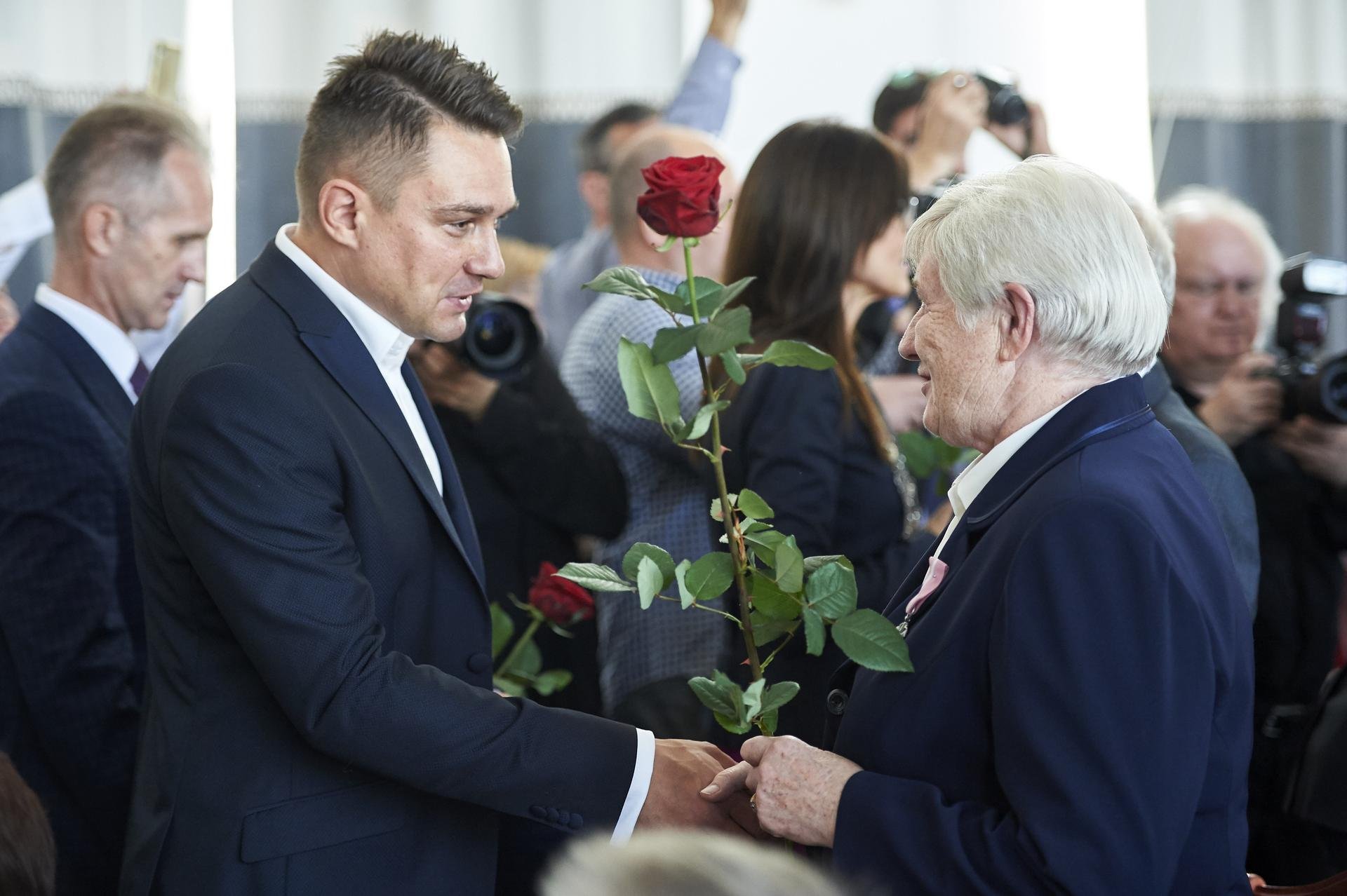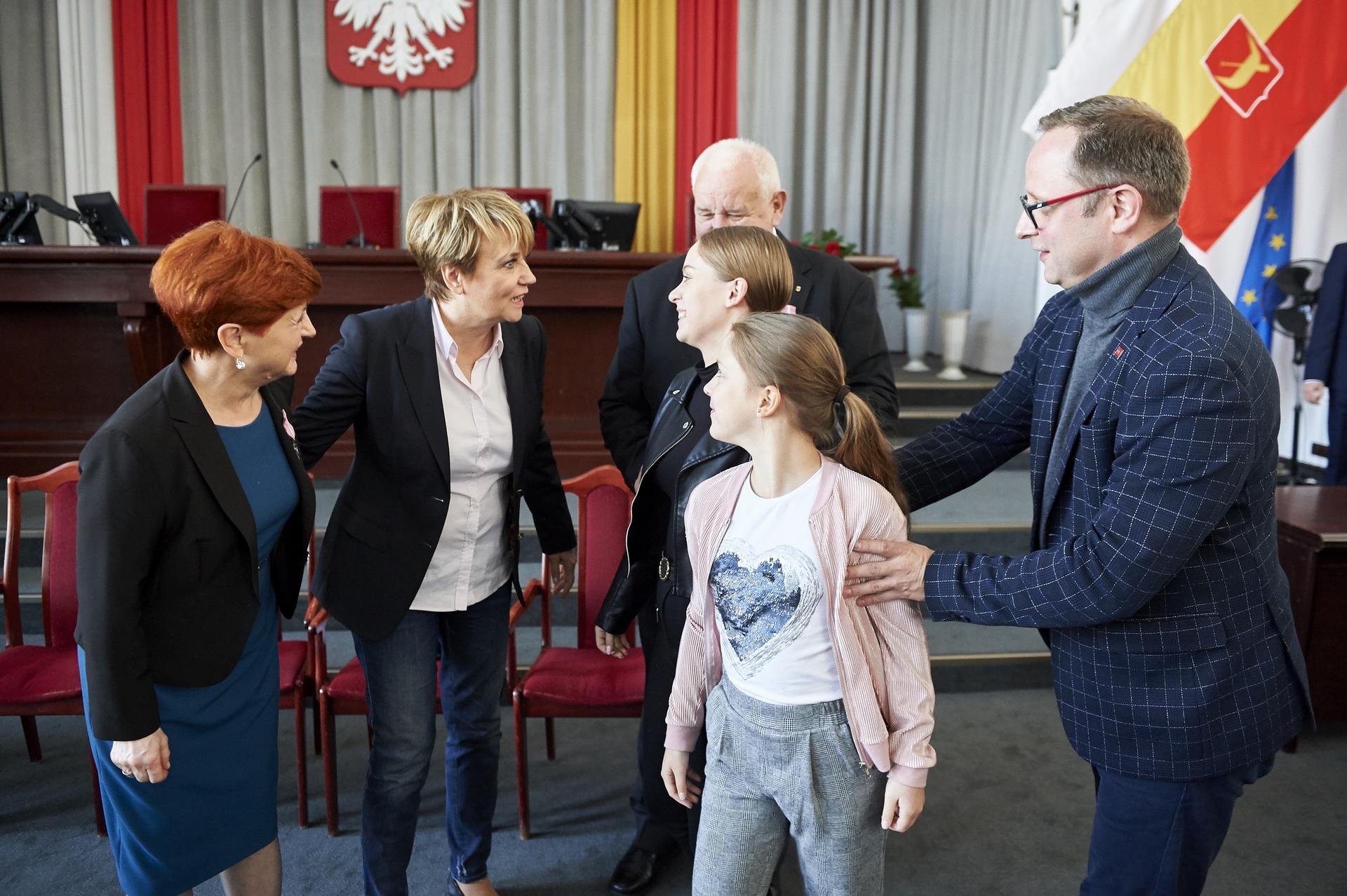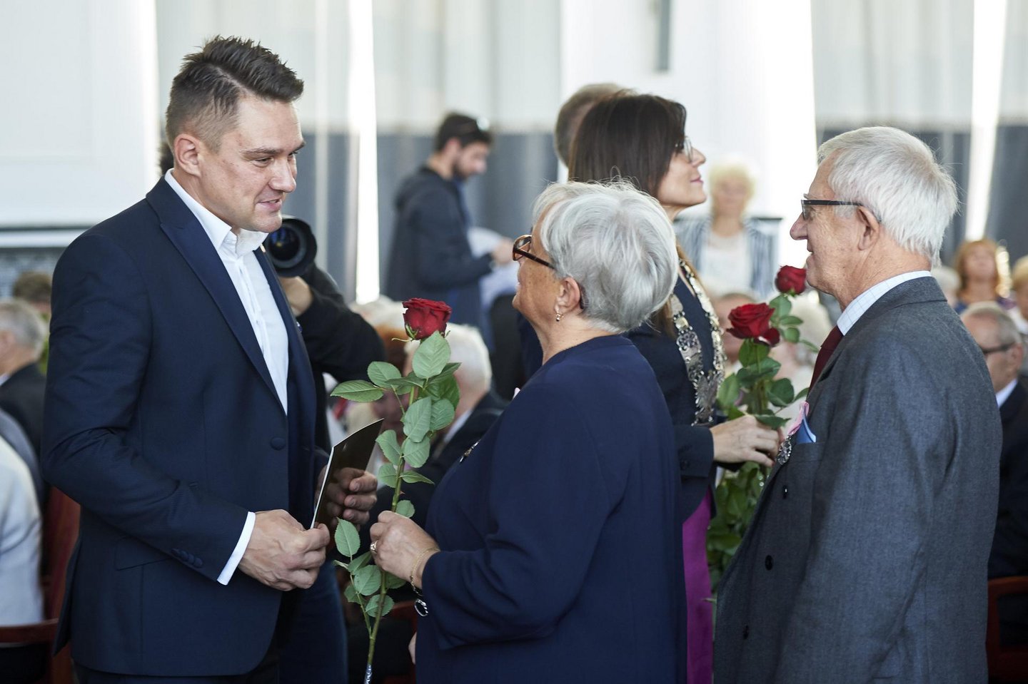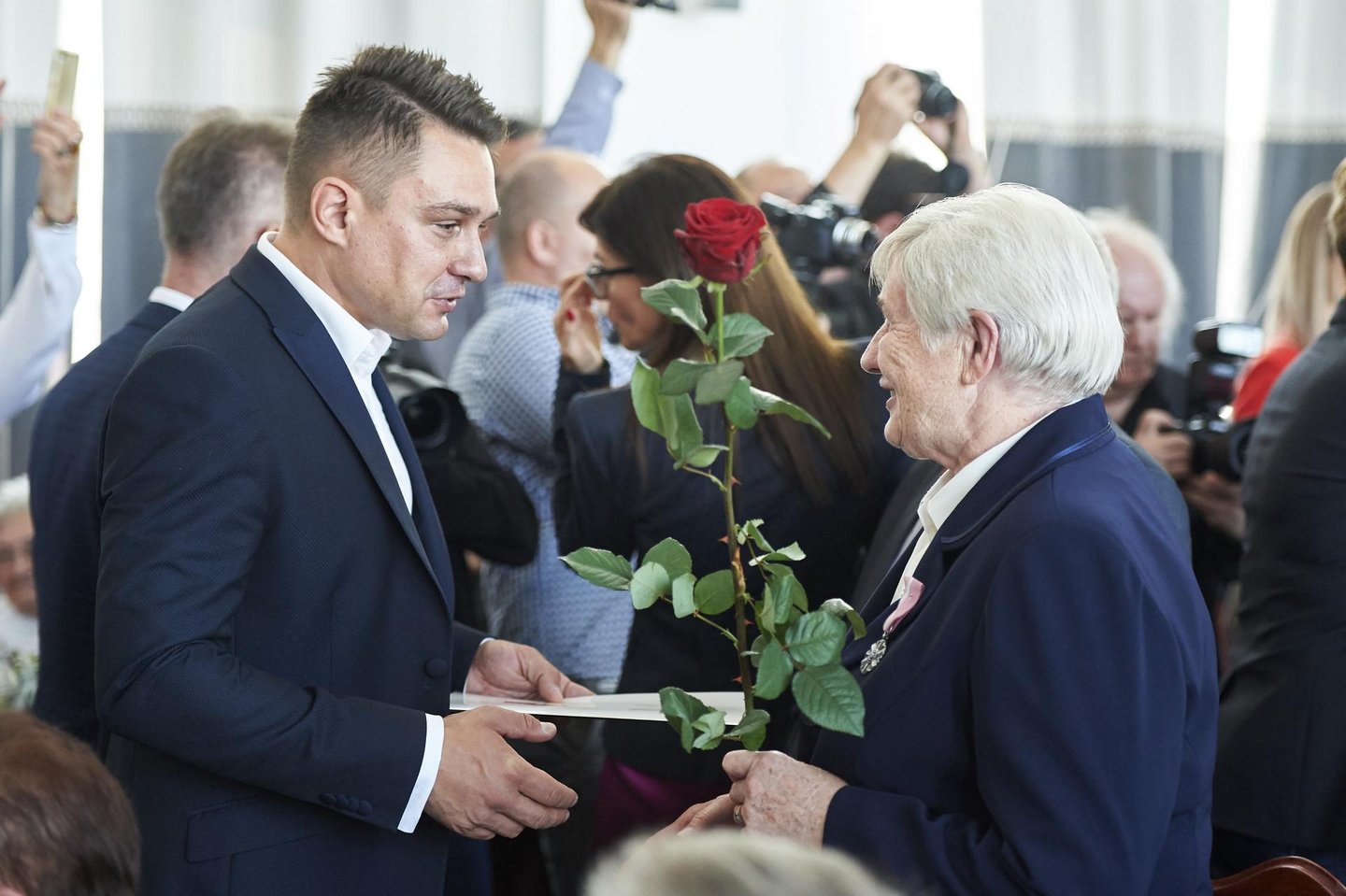 Podziękowania za godne i długie lata małżeńskiego pożycia oraz piękny przykład dla młodego pokolenia w imieniu łódzkiej Rady Miejskiej, przekazał jej przewodniczący Marcin Gołaszewski: - To dla mnie ogromny zaszczyt, że mogę tu dzisiaj być. Przy takiej okazji zawsze jestem szczerze wzruszony. Ze swojej strony życzę Państwu jeszcze wielu lat szczęścia, miłości, żebyście byli dla siebie wsparciem. Przez ile burz trzeba przejść i przez ile pięknych chwil, żeby wiedzieć, że zawsze można liczyć na drugą osobę - podkreślał Marcin Gołaszewski, dedykując szacownym jubilatom wiersz Bolesława Leśmiana "Lubię szeptać ci słowa, które nic nie znaczą".