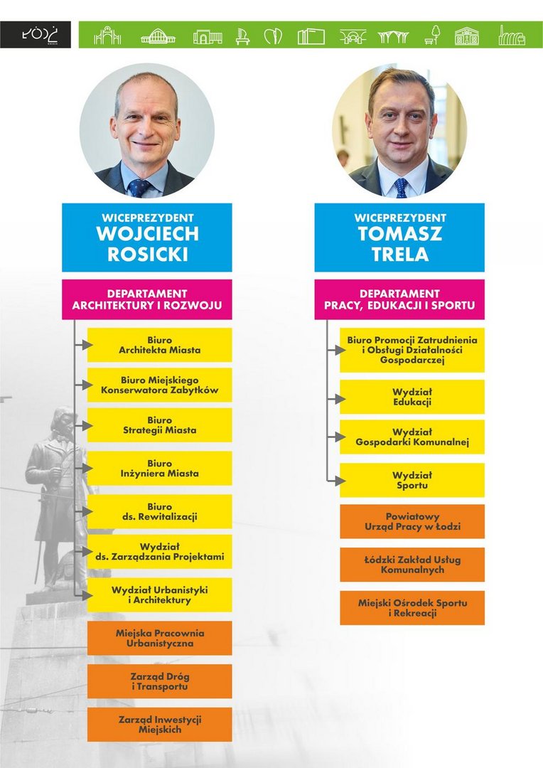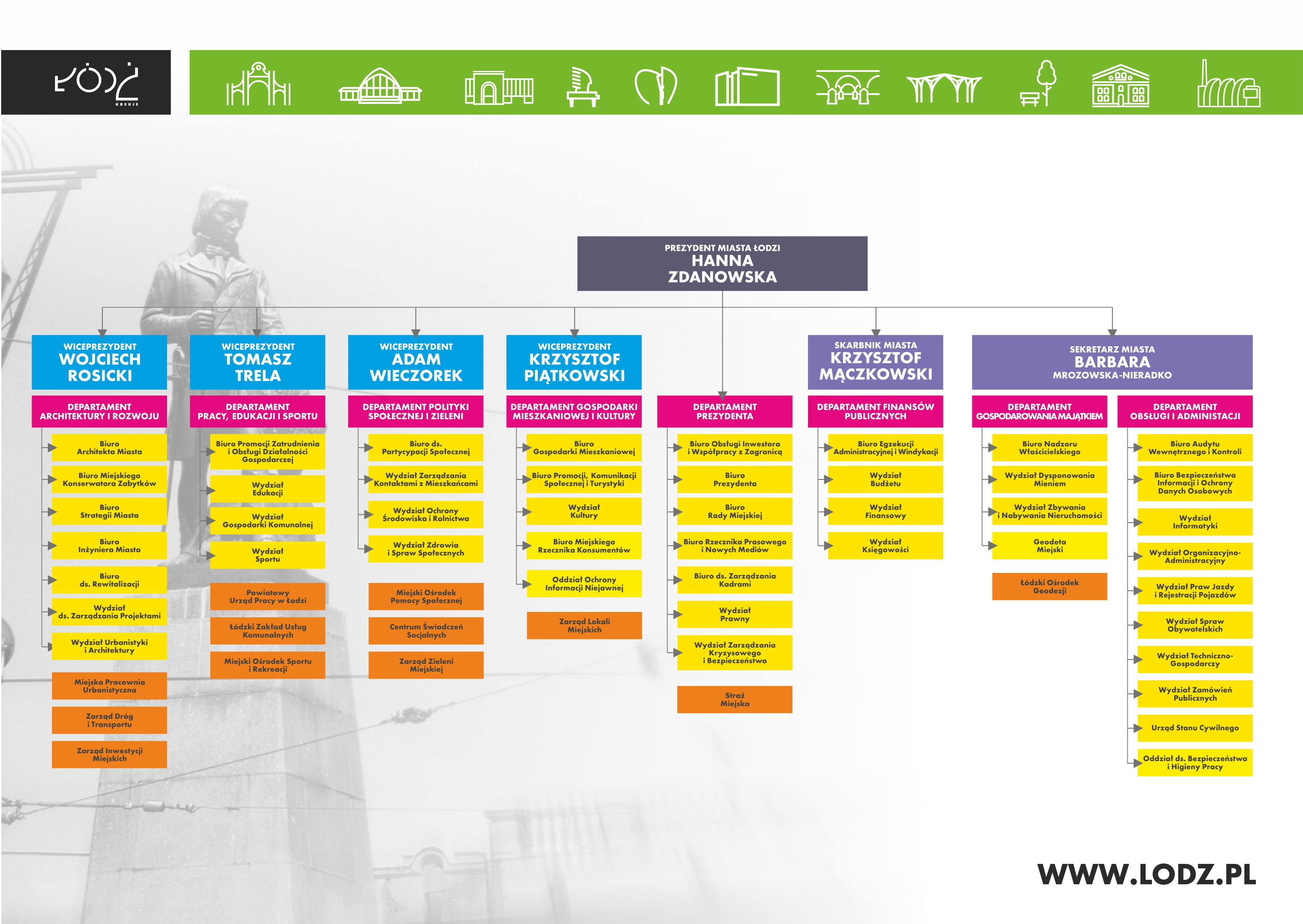 W gronie najbliższych współpracowników prezydent Hanny Zdanowskiej pozostają również sekretarz miasta Barbara Mrozowska-Nieradko, kierująca Departamentem Gospodarowania Majątkiem i Departamentem Obsługi i Administracji, a także skarbnik Krzysztof Mączkowki, który ma pieczę nad Departamentem Finansów Publicznych.