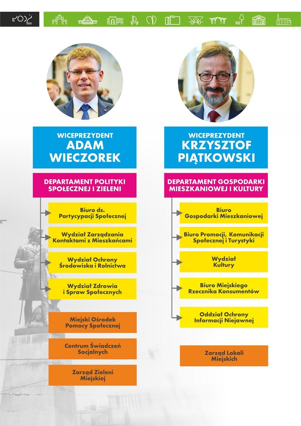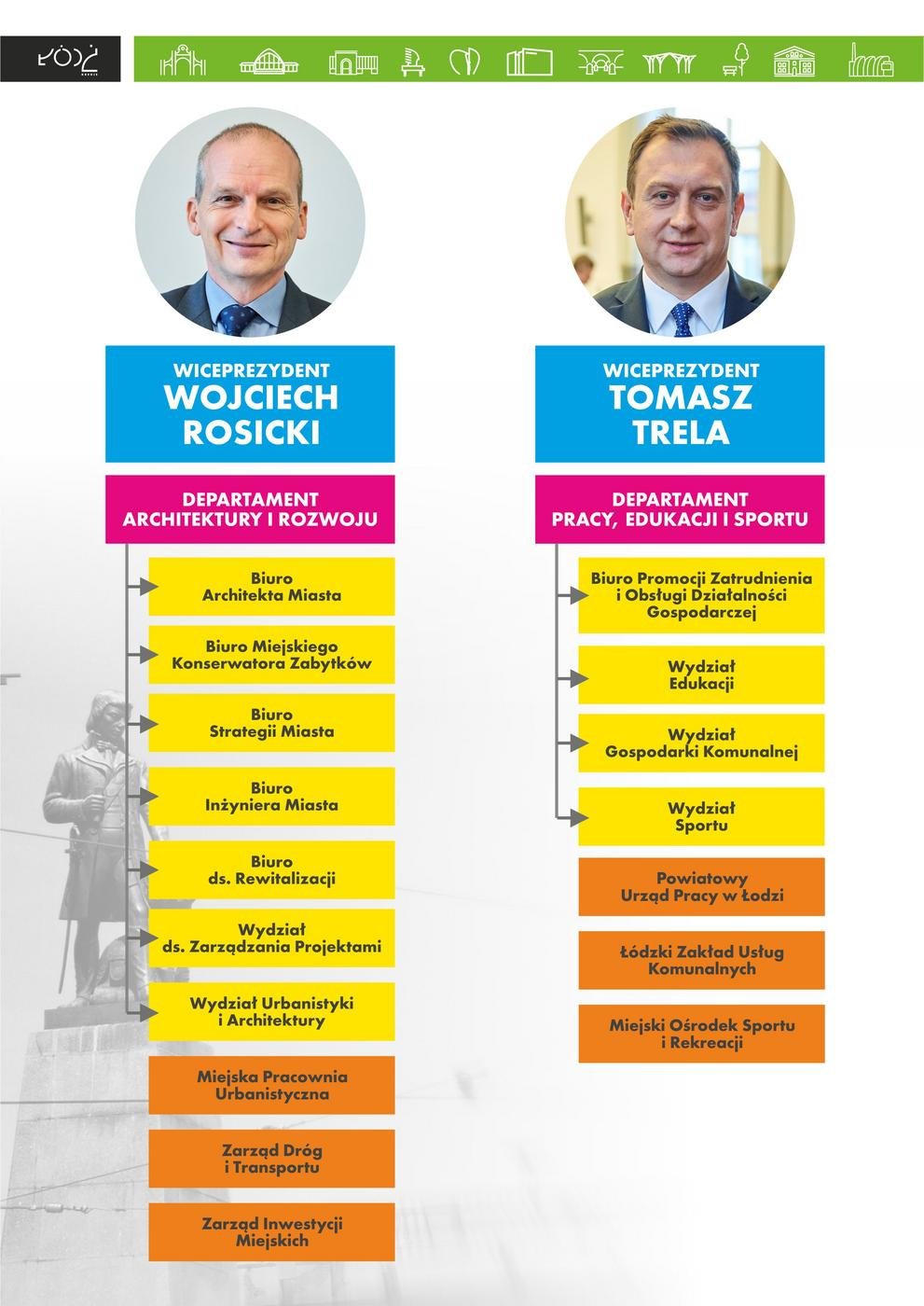 Wiceprezydent Tomasz Trela będzie nadzorował Departament Pracy, Edukacji i Sportu, wiceprezydent Wojciech Rosicki pokieruje działaniami w Departamencie Architektury i Rozwoju, a wiceprezydent Krzysztof Piątkowski będzie koordynował pracę Departamentu Gospodarki Mieszkaniowej i Kultury.