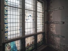 • renowacja witraży okiennych, odtworzenie pierwotnych tapet z tkanin oraz renowacja i odtworzenie boazerii drewnianych.