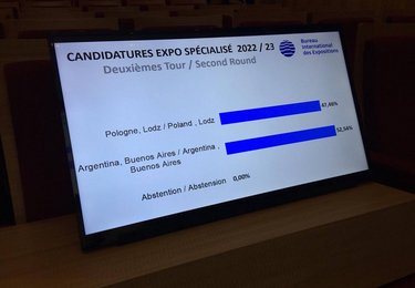 W pierwszej turze: Polska i Argentyna zdobyły po 46 głosów, a USA - 25. W finałowym głosowaniu na kandydaturę Buenos Aires zagłosowało 62 delegatów BIE, na Łódź - 56. Do pełni szczęścia zabrakło niewiele, ale korzyści z udziału Łodzi w tej rywalizacji już są widoczne. Przede wszystkim to znakomita promocja naszego miasta na arenie międzynarodowej, a także zapoczątkowany już proces rewitalizacji Łodzi, który będzie kontynuowany. Zaproponowana przez Polskę i Łódź koncepcja wystawy poświęconej rewitalizacji miast i rozwojowi aglomeracji zyskał uznanie wielu krajów świata. Oferta Buenos Aires dotyczy innowacyjności i kreatywnych rozwiązań w wielu branżach.