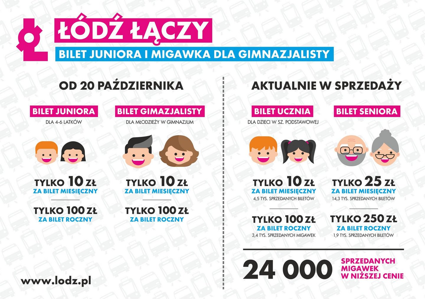 Miasto rozszerza ofertę tanich migawek. Do obowiązujących od 1 września biletów miesięcznych dla uczniów szkół podstawowych i seniorów dołącza bilet juniora, dla dzieci w wieku 4-6 lat, oraz bilet gimnazjalisty.