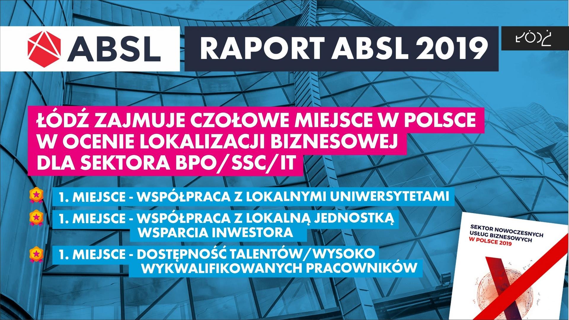 Łódź kreuje miejsca pracy, przyczyniają się do tego, że  w ocenie firm poziom konkurencji wśród centrów w najmniejszym stopniu wpływa na działalność firm w Łodzi i Poznaniu (raport ABSL, 2019).