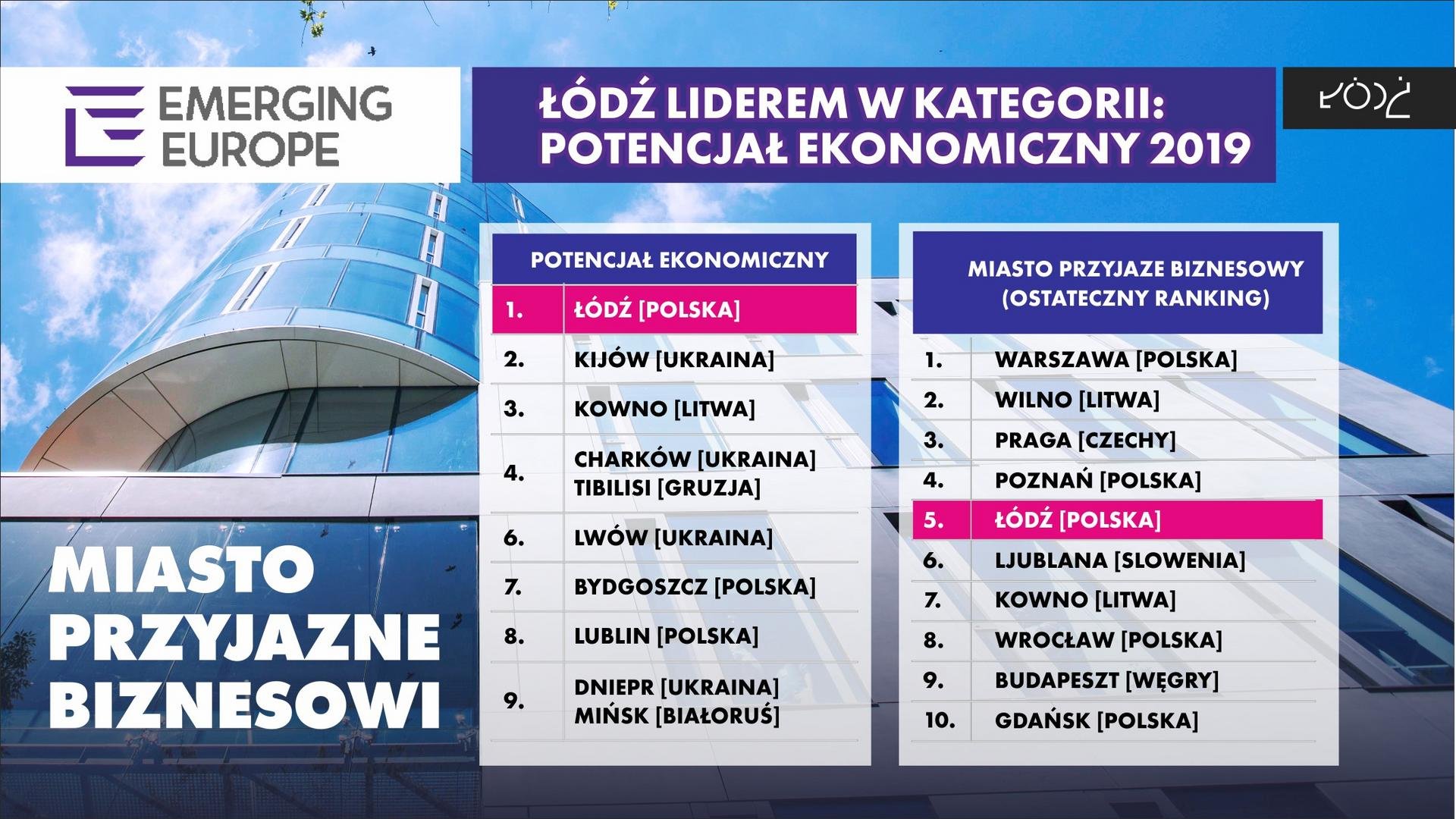Wyróżnienie od organizacji Emerging Europe ma wymiar bardziej ogólny, nie dotyczy konkretnej branży. Oceniony został całościowy obraz potencjał Miasta na tle bardzo szerokiej konkurencji, którą stanowiły miasta z regionu CEE składającego się z kilkunastu państw. Programy wsparcia i promocji firm w Łodzi, takie właśnie jak wspomniany program Młodzi w Łodzi, czy plakaty promujące miejsca pracy w firmach.