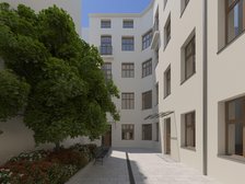 Podwórko kamienicy przy ul. Narutowicza 4 po remoncie - wizualizacja.