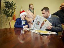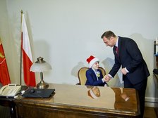 - W Mikołajki spełniamy marzenia. My dziś spełniamy marzenie Przemka. Mam nadzieję, że przez trzy godziny będzie godnie zarządzał miastem i zobaczy, jak wygląda urząd, gabinet prezydenta, jak pracuje gospodarz miasta i jakie decyzje podejmuje - mówił wiceprezydent Tomasz Trela.