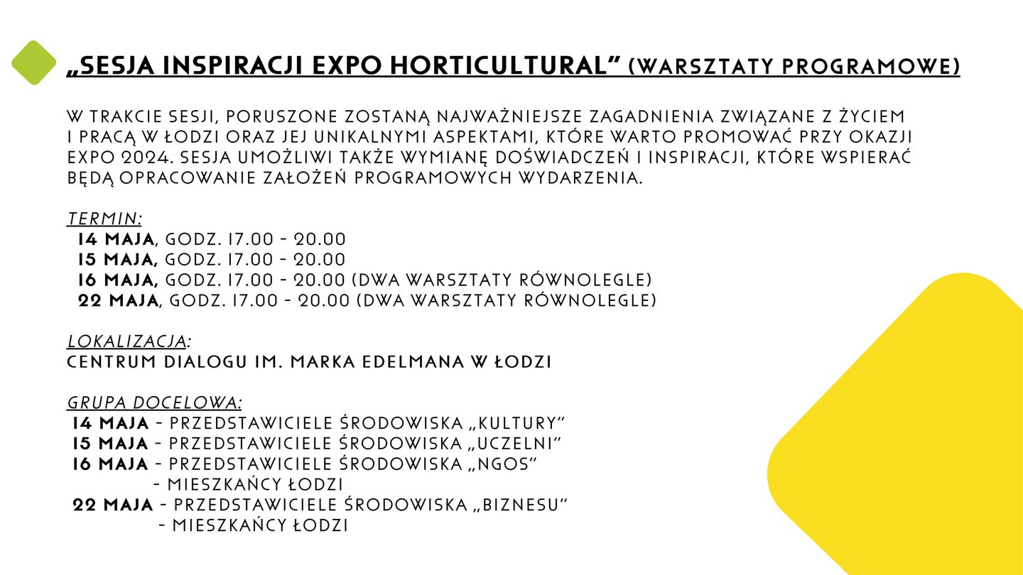 Przygotowania do Horticultural Expo 2024 przyspieszają. Trwa opracowywanie studium wykonalności projektu, w ramach którego przewidziano szereg działań partycypacyjnych i konsultacyjnych skierowanych do mieszkańców Łodzi i grup eksperckich.