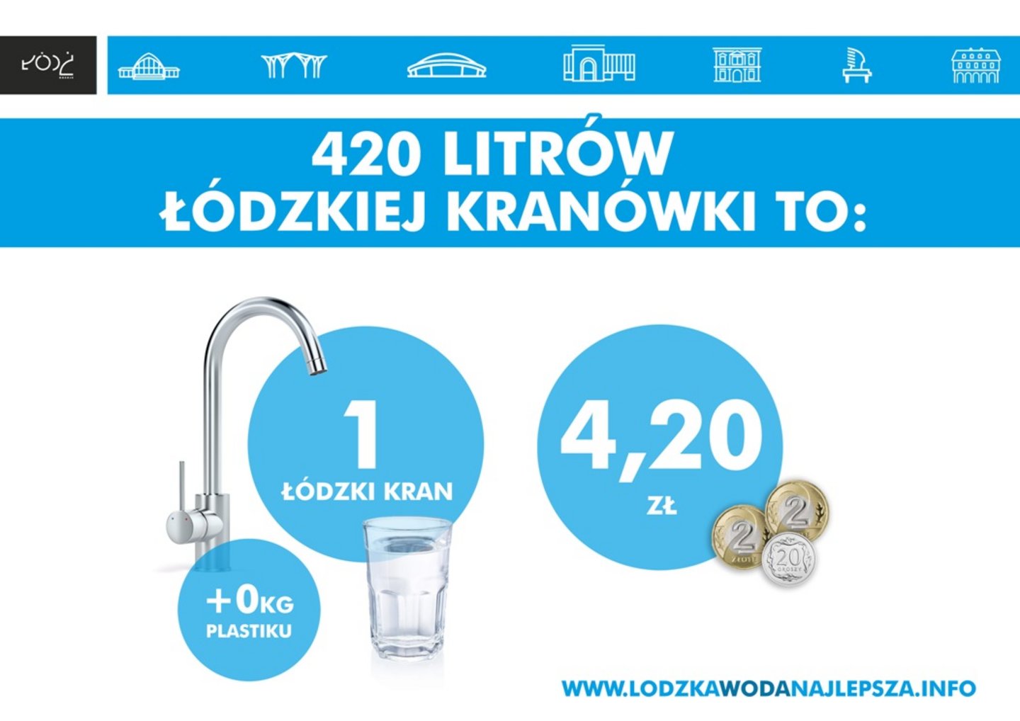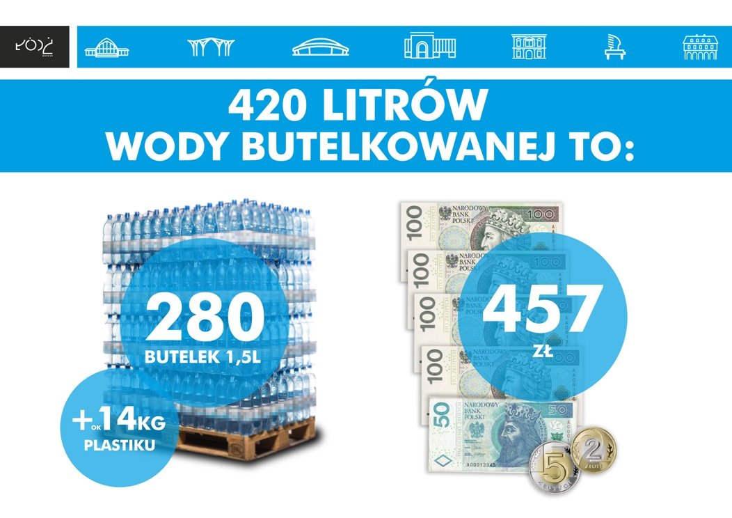 - Łódzka kranówka kosztuje 0,01 zł x 420 litrów = 4,2 zł czyli mniej niż 5 złotych.
