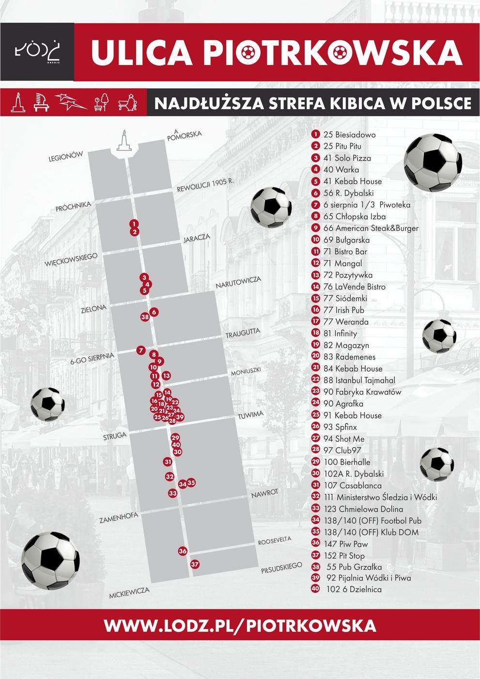 40 lokali, znajdujących się przy ulicy Piotrkowskiej pokazywać będzie mecze nadchodzących Mistrzostw Świata w Piłce Nożnej Rosja 2018. Szczególne obłożenie będą miały spotkania polskiej reprezentacji. Kilka restauracji i pubów przygotuje też specjalną ofertę, nawiązującą do konkretnych krajów, występujących w turnieju.