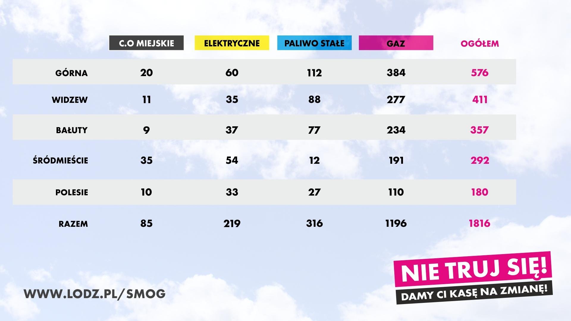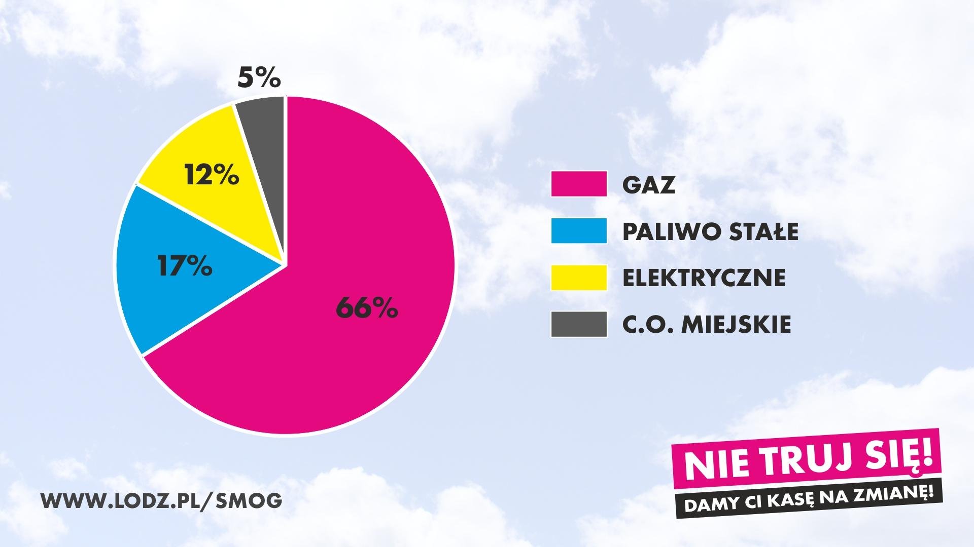 66 procent łodzian zdecydowało, że chce mieć u siebie ogrzewanie gazowe, 17 procent wybrało paliwa stałe, 12 procent zdecydowało się na ogrzewanie elektryczne, a 5 procent wnioskodawców chce się podłączyć do miejskiej sieci centralnego ogrzewania.