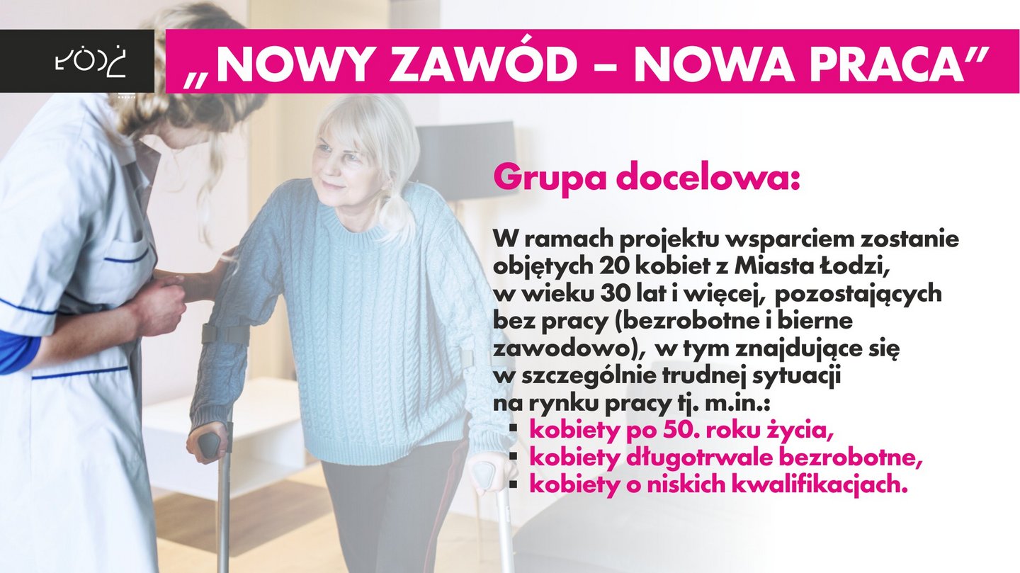 Grupa docelowa: W ramach projektu wsparciem zostanie objętych 20 kobiet z Miasta Łodzi, w wieku 30 lat i więcej, pozostających bez pracy (bezrobotne i bierne zawodowo), w tym znajdujące się w szczególnie trudnej sytuacji na rynku pracy tj. m.in.: