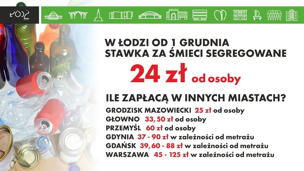 Od 1 grudnia łodzianie będą obowiązkowo segregować odpady na 5 frakcji: papier, szkło, plastik i metal, bio oraz resztkowe, czyli pozostałe po segregacji. Ta rewolucja to efekt nowelizacji ustawy o utrzymaniu czystości i porządku w gminach wprowadzonej przez rząd PiS, a rosnące koszty zagospodarowania odpadów wymuszają na samorządach wprowadzanie nowych stawek opłat. W Łodzi od 1 grudnia będzie to 24 zł od osoby.