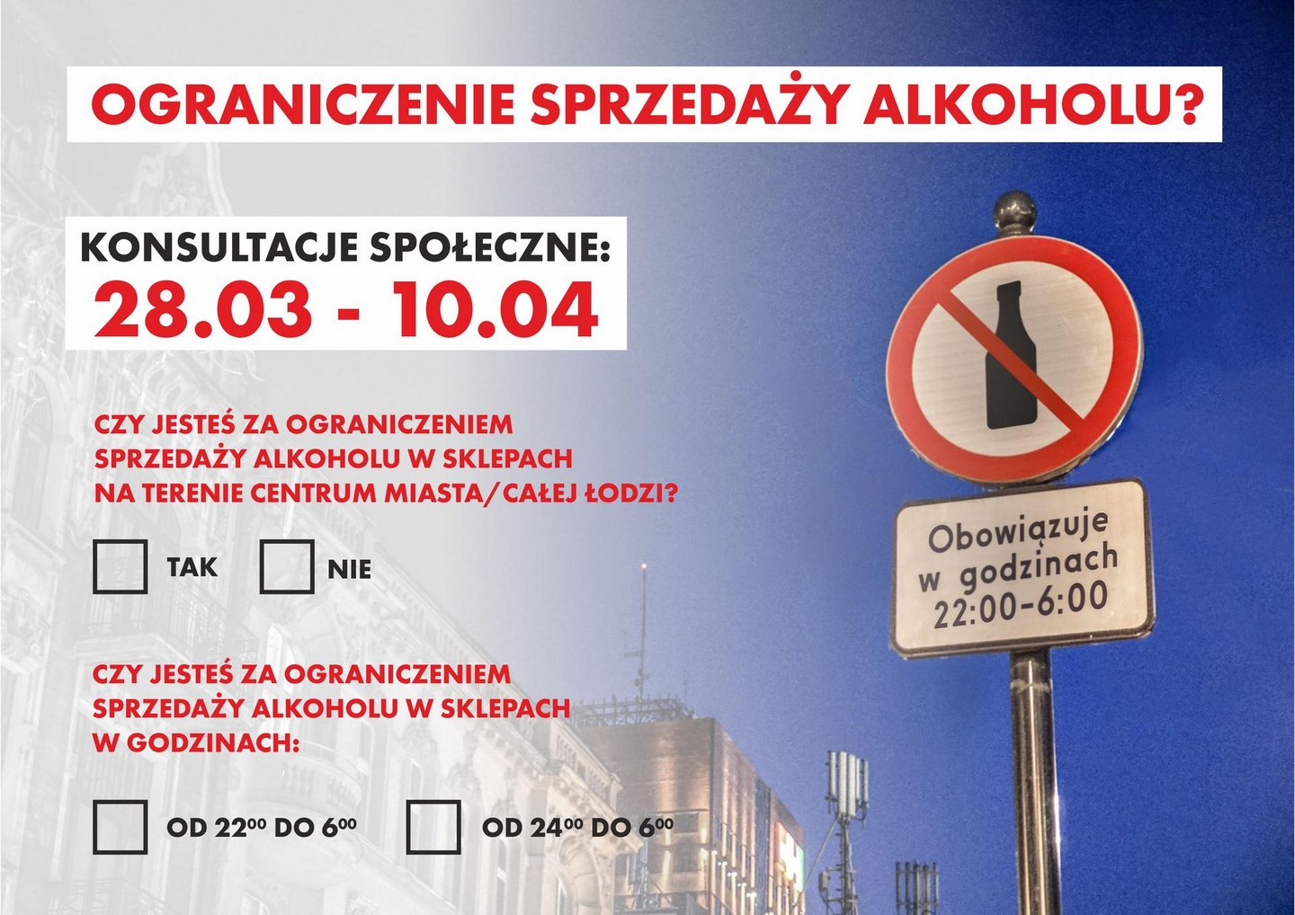 Nowelizacja ustawy o wychowaniu w trzeźwości i przeciwdziałaniu alkoholizmowi umożliwia gminie wprowadzenie ograniczeń w sprzedaży alkoholu. Dlatego Urząd Miasta Łodzi zdecydował się na konsultacje społeczne w sprawie ograniczenia sprzedaży alkoholu w godzinach nocnych. Teraz, na wniosek mieszkańców, badanie opinii łodzian w tej sprawie, zostanie poszerzone. Szeroko zakrojone konsultacje pozwolą zdiagnozować, co zdaniem łodzian powinno ulec zmianie w zakresie handlu alkoholem.
