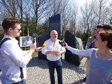 Przy pomniku „Żegoty” w Parku Ocalałych odbyła się lekcja historii, na której młodzi ludzie dowiedzieli się o martyrologii Żydów polskich i sposobach ratowania ich przed niemieckimi okupantami.
