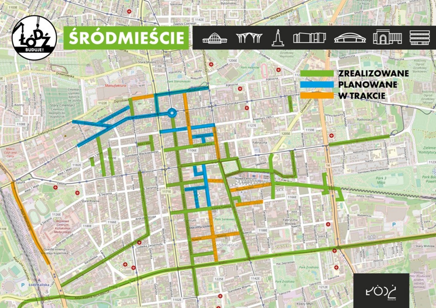 W ubiegłych latach przebudowane zostały ulice Tuwima, Struga, Piotrkowska, Roosevelta, 6 sierpnia, Traugutta, Piramowicza, Zacisze, Kilińskiego, Nowe Centrum Łodzi, Trasa W-Z, Jaracza, Narutowicza, Kopernika, czy Gdańska. Przed nami natomiast jeszcze kilka ważnych inwestycji, które dopełnią złożoną układankę remontowanych ulic w centrum miasta. Do przebudowy planujemy ul. Północną, ul. Ogrodową, plac Wolności, ul. Legionów, ul. Cmentarną, ul. Mielczarskiego, ul. Włókienniczą, oraz pasaże i nowe drogi w przebiciach kwartałowych.