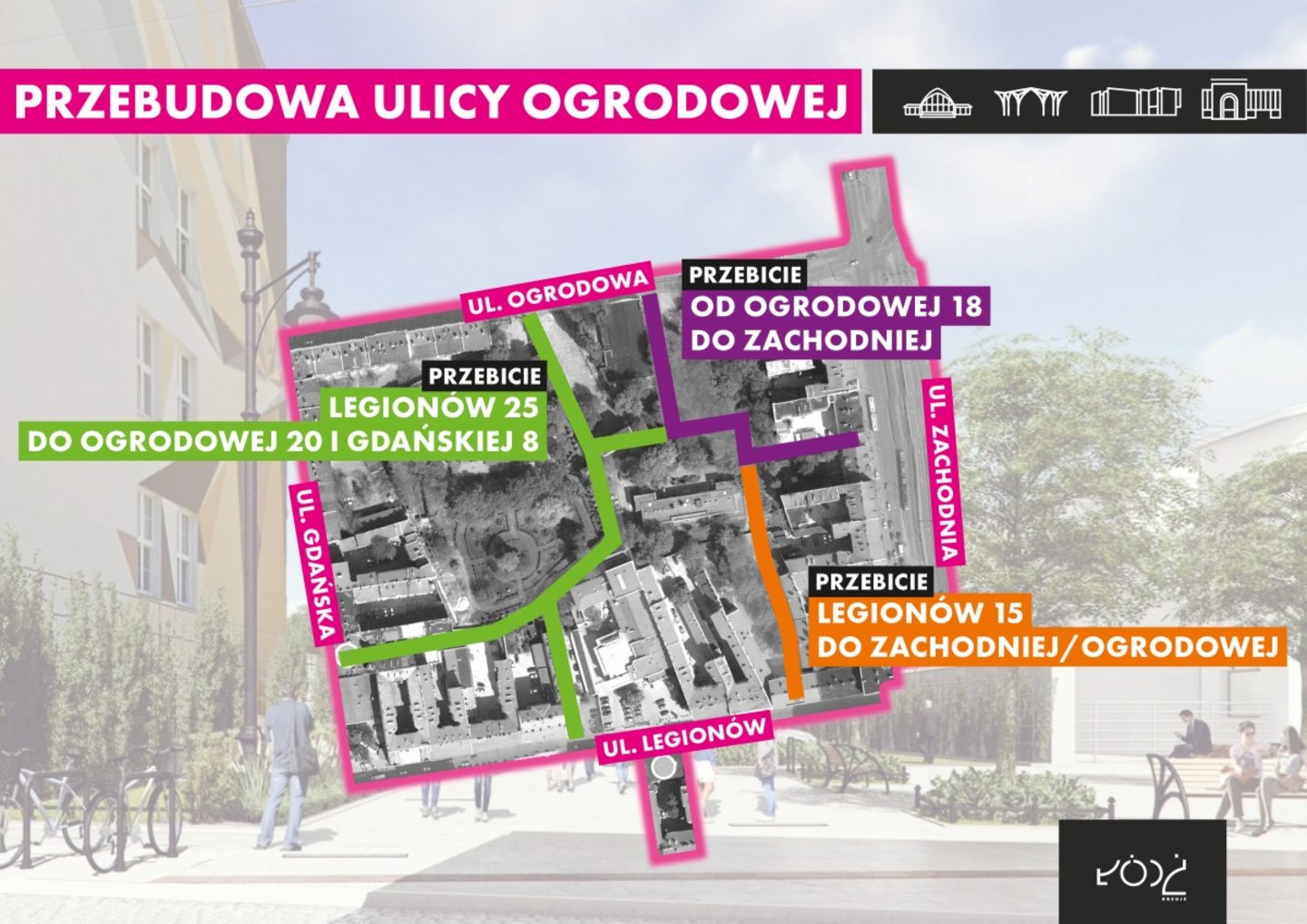 Po zakończeniu robót na ulicy Ogrodowej wyremontowana zostanie również ulica Zachodnia od (Ogrodowej do Legionów). Jednocześnie powstaną trzy przebicia kwartału, które będą tworzyły pasaże z dużą ilością zieleni i ławek.