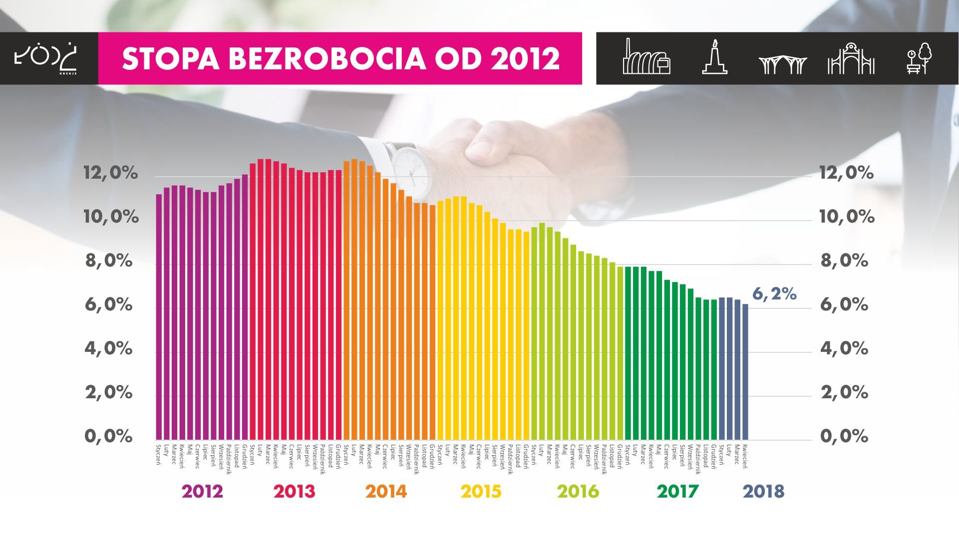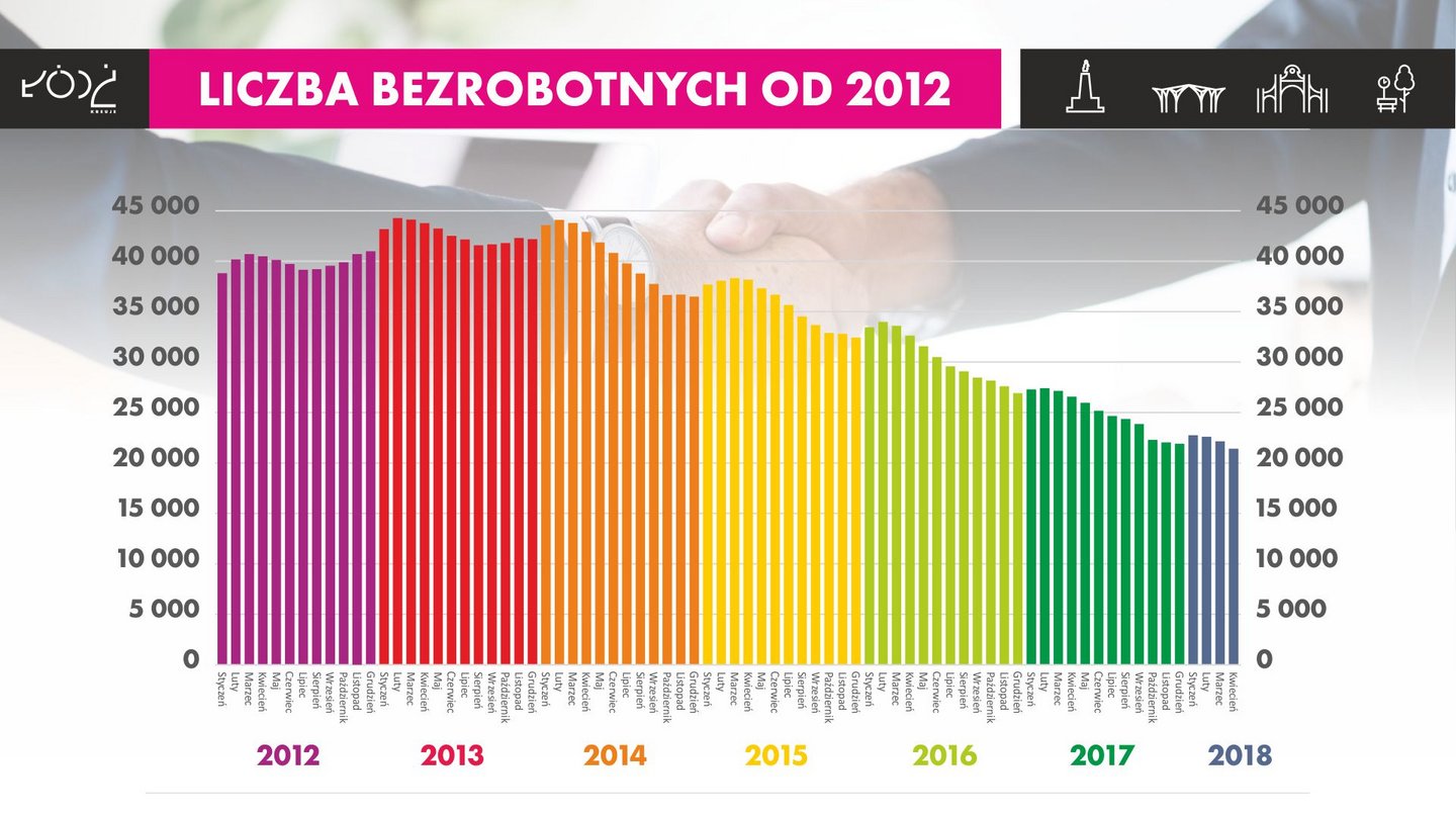 Obecnie bezrobocie w Polsce wynosi 6,6 proc., zaś w województwie łódzkim 6,3 proc. W Łodzi bez pracy pozostaje ok. 21 tys. osób. Działania podejmowane przez samorząd łódzki dążą do zmniejszenia liczby bezrobotnych poniżej 20 tys. osób. Głównym celem jest osiągnięcie bezrobocia na poziomie 5 proc. - Tak niedawno zaczynaliśmy od 12 proc., to było 3,5 roku temu, kiedy wprowadziliśmy zmiany na rynku pracy i one bardzo szybko przyniosły dość dobre efekty - podkreśla dyrektor Piotr Bors.
