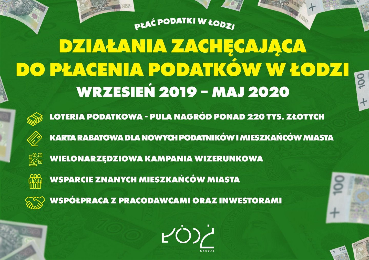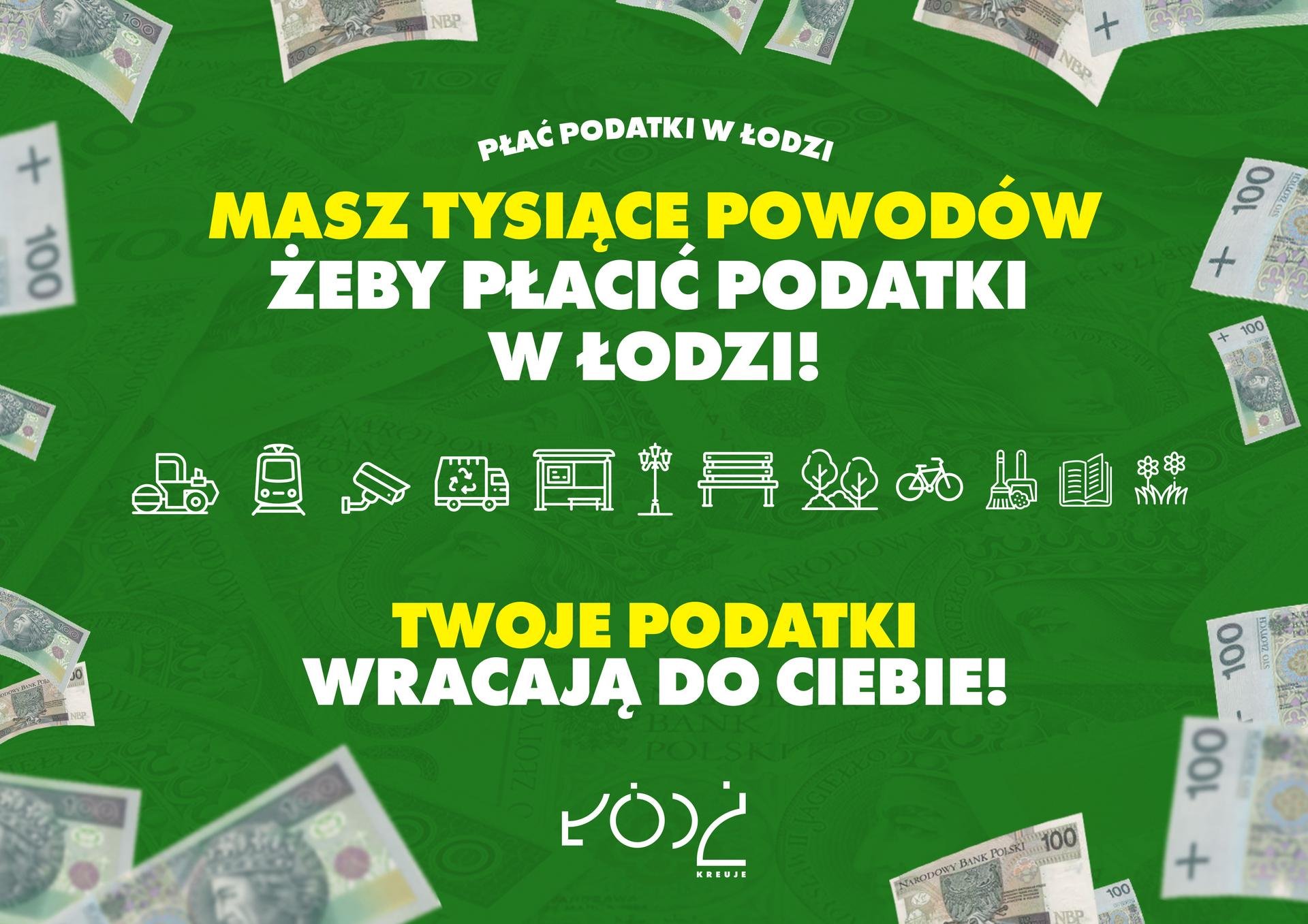 Twój podatek to zadbany park, nowy żłobek, zajęcia dla seniorów, większy plac zabaw i wiele innych. Meldunek w tym przypadku nie ma znaczenia. Już we wrześniu rozpoczynamy wielką kampanię zachęcającą do rozliczenia podatków w Łodzi. Zaplanowane do czerwca 2020 działania będą kierowane do osób mieszkających w mieście, ale płacących podatki w gminach ościennych. W ramach kampanii odbędzie się m.in. loteria z pulą nagród 220 tys. zł oraz wprowadzona zostanie specjalna karta rabatowa.
