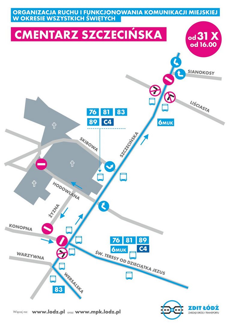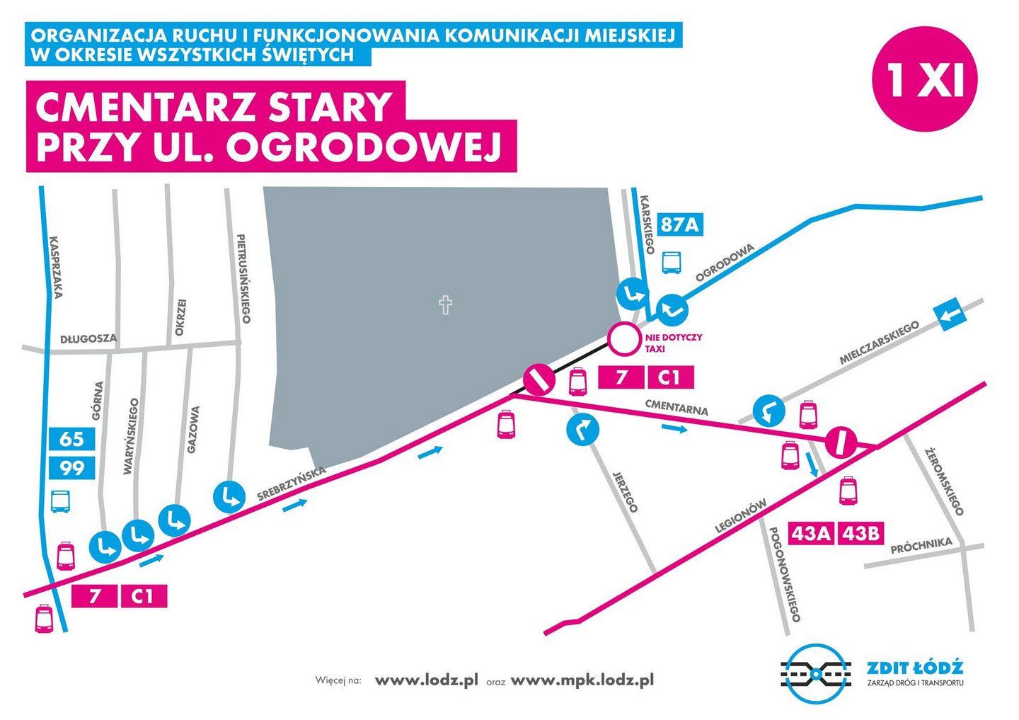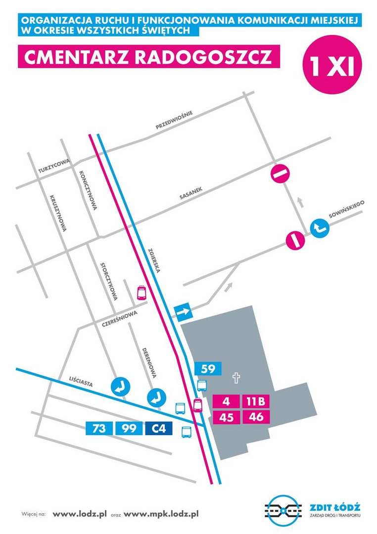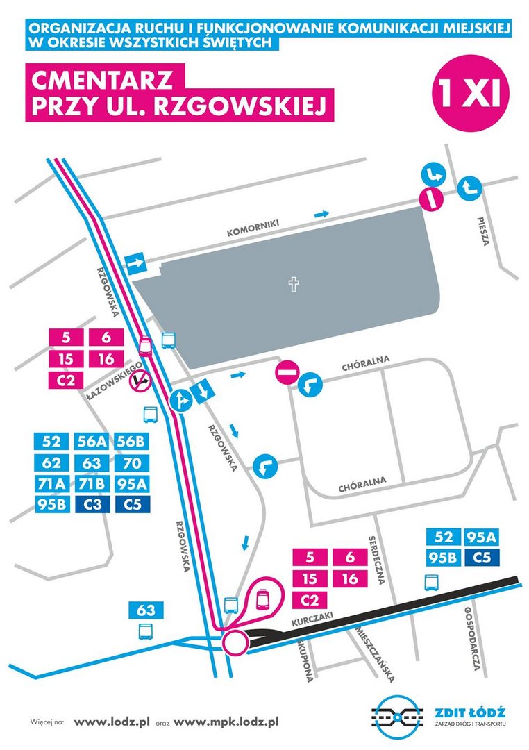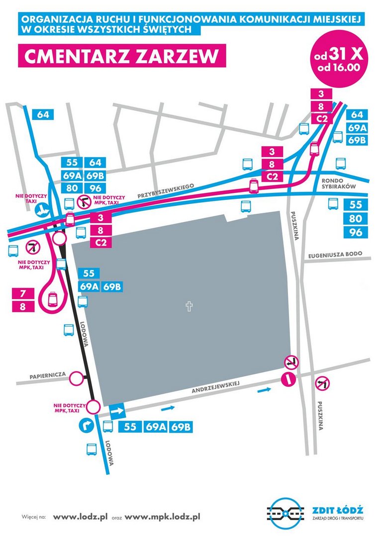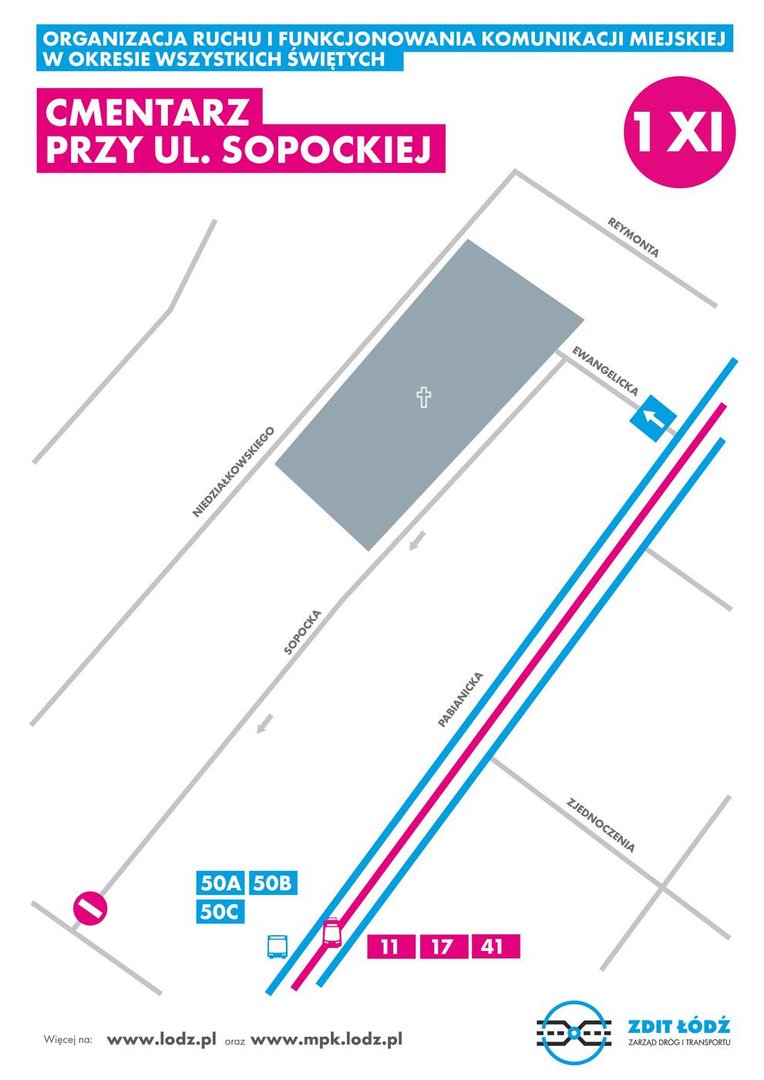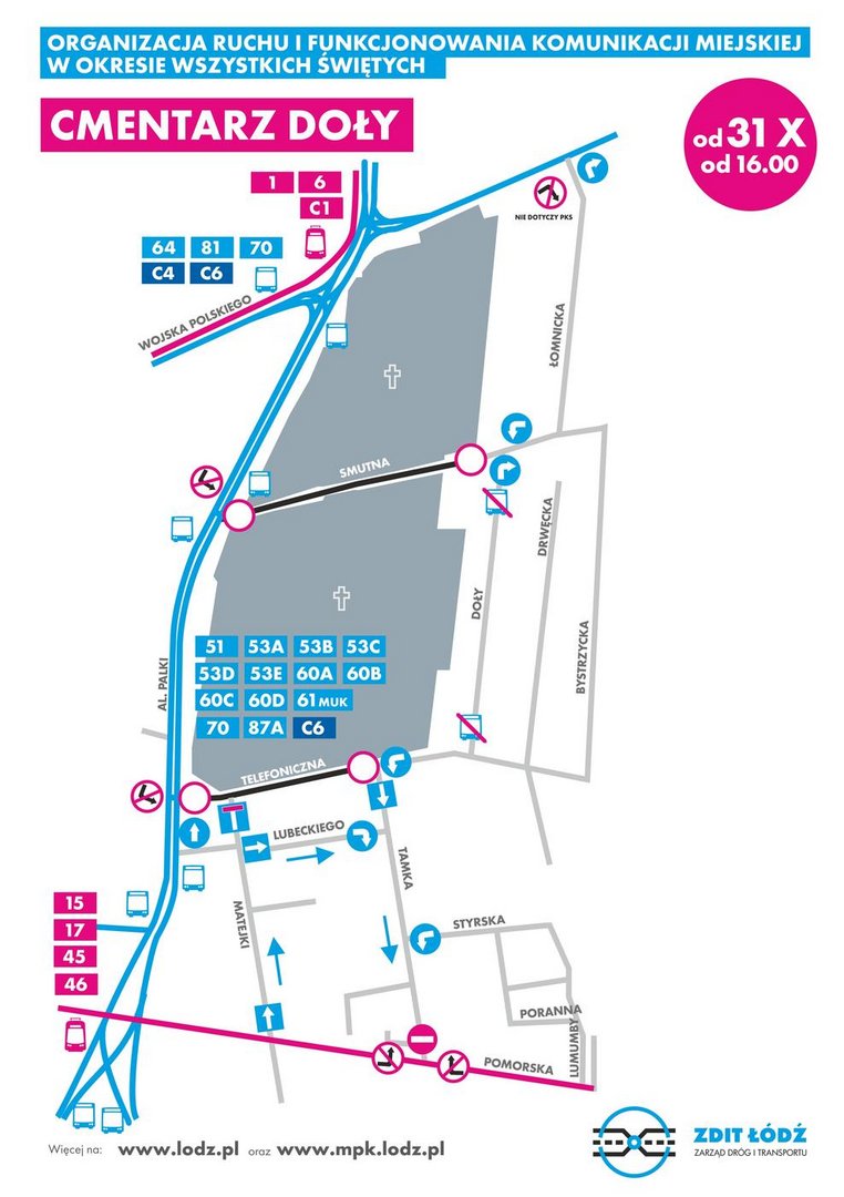 Na czas Wszystkich Świętych uruchomione zostanie sześć dodatkowych linii specjalnych, a najważniejsze linie tramwajowe i autobusowe kursować będą jak w tygodniu. Autobusy przejadą przez zamknięte odcinki ulic. Zachęcamy, aby tego dnia skorzystać z komunikacji miejskiej jako dojazd do łódzkich nekropolii.
