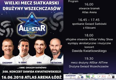 Gwiazdorski mecz All-Star Volley odbędzie się 16 czerwca br. w Atlas Arenie. - Zapraszam na wydarzenie, które będzie świętem siatkówki. Znowu będziemy mieli okazję zobaczyć największych siatkarzy i cieszyć się świetną sportową atmosferą. Impreza będzie też miała wymiar, który dla mnie jest szalenie istotny, wymiar charytatywny. Obecność na tym wydarzeniu to szansa dla tych, którym mniej się powodzi, by spełnić swoje marzenia, te mniejsze i te większe – zachęca prezydent Hanna Zdanowska. Wśród gwiazd, które rozegrają mecz znajdują się: Zbigniew Bartman, Ryszard Bosek, Wadim Chamutckich, Taras Chtiej, Andrea Gardini, Giba, Stanisław Gościniak, Vladimir Grbić, Piotr Gruszka, Karol Kłos, David Lee, Mauricio Lima, Markos Milinković, Władimir Nikołow, Rusłan Olichwier, Samuele Papi, Raul Quiroga, Aleksandr Sawin, Edward Skorek, Grzegorz Szymański, Sergiej Tietiuchin, Goran Vujević, Michał Winiarski, Paweł Zagumny, Andrea Zorzi.