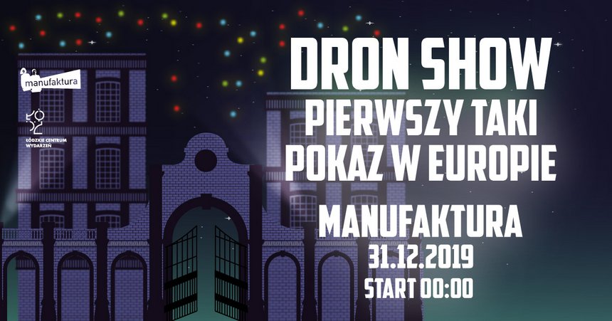 Łódź jako pierwsze miasto w Europie proponuje mieszkańcom unikatowy sposób powitania Nowego Roku: na niebie nad Manufakturą dzięki setkom oświetlonych dronów łodzianie podziwiać będą niezwykłe świetlne show. Wszystko to będzie możliwe dzięki zastosowaniu najnowszych technologii. Wykorzystany system oparty na zdalnym sterowaniu i możliwości programowania dedykowanych figur wykonywanych przez eskadrę dronów. – Obserwujemy pogodę i wszystko wskazuje, że pokaz odbędzie się bez przeszkód. Szykujemy dla łodzian wyjątkowe widowisko, jakiego w Polsce jeszcze nie oglądano. Zdecydowanie warto przyjść w sylwestrową noc do Manufaktury – zachęca Robert Fintak, jeden z organizatorów pokazu.