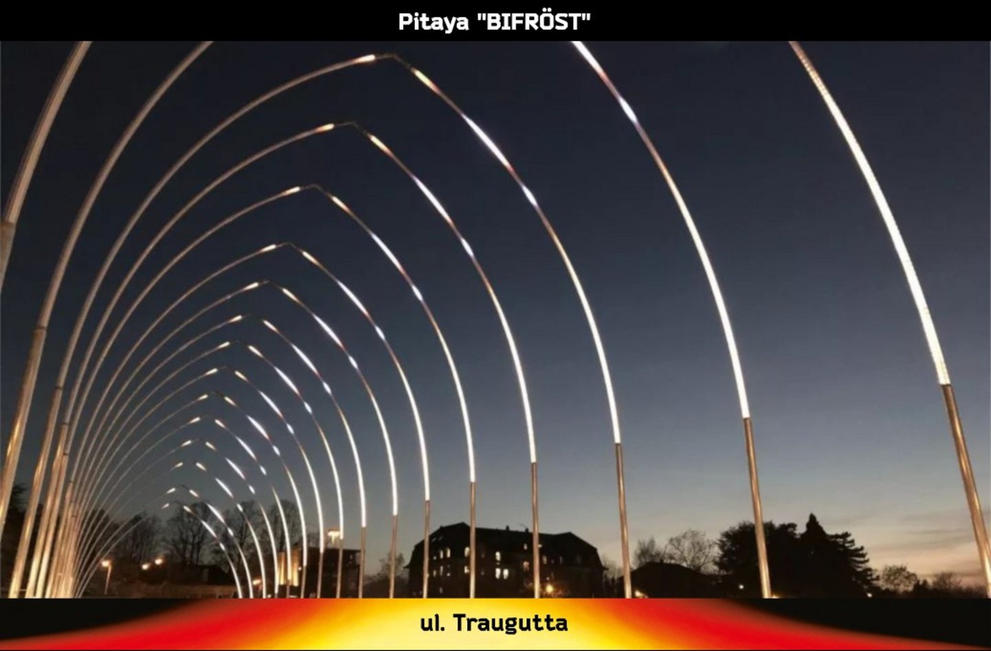 Na ul. Traugutta stanie świetlny tunel. Brama zatytułowana jest Bifröst, co w mitologii nordyckiej oznacza pomost między światem żywych, a królestwem bogów. Podróż pod jasnymi arkadami będzie wciągającym doświadczeniem, w którym akcja przechodzenia przez most staje się introspektywną wyprawą, rytuałem przejścia. A w naszym mieście, to przejście z postindustrialnej Łodzi w jej powstające nowe centrum. Imponująca konstrukcja jest dziełem francuskiego studia PITAYA.