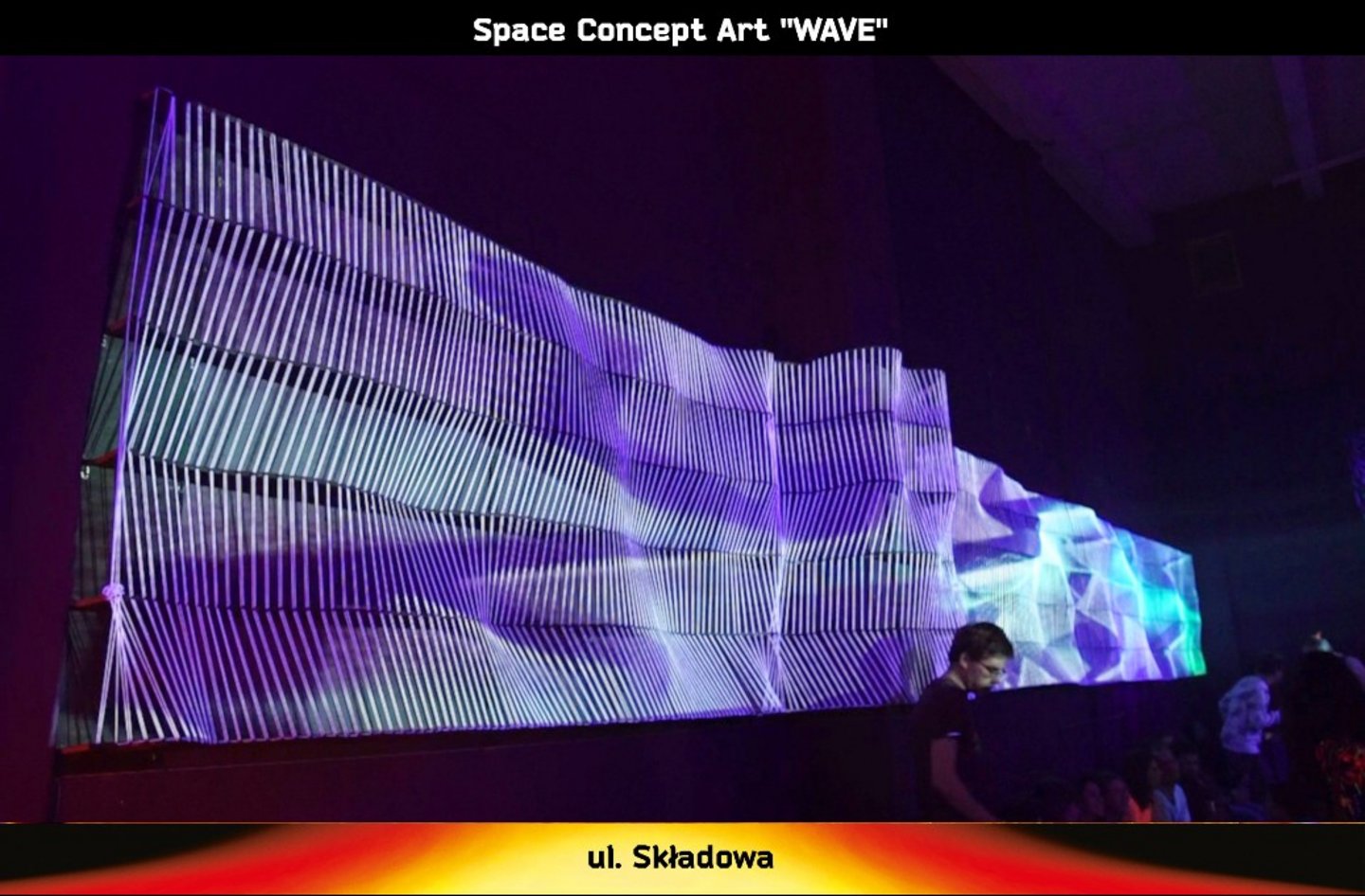 Kosmiczna fala wykonana w technice StringArt. Kilkaset pionowych linii utkanych białą włóczką, tworzących pofalowaną strukturę, nawiązującą do powierzchni wzburzonej cieczy. Do oświetlenia ekranu zostaną użyte lampy ultrafioletowe. Ponadto na ekranie wyświetlana będzie projekcja wizualna w formie standardowego mappingu oraz zaprogramowanej wiązki laserowej. Pokazom tym będzie towarzyszył dźwięk i muzyka.