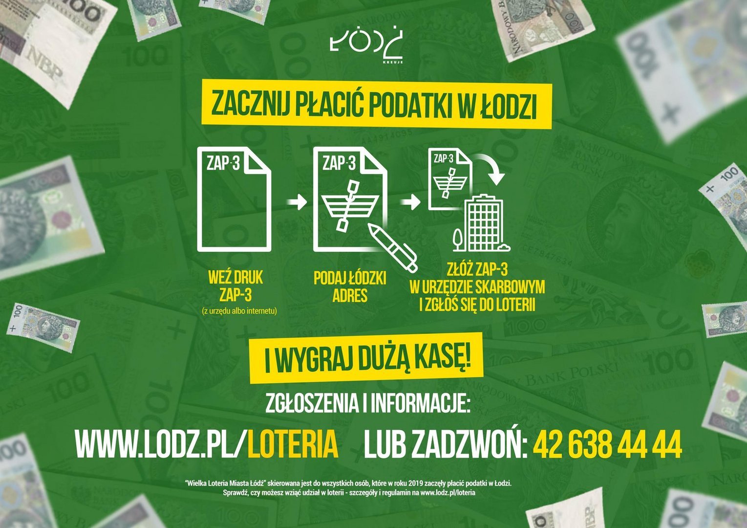 W pierwszej kolejności trzeba będzie wypełnić prosty formularz ZAP3 (wskazać w nim Łódź jako miejsce zamieszkania) i złożyć go, w dowolnie wybranym urzędzie skarbowym. Kolejny krok zbliżający do wygranej to zgłoszenie się do udziału w losowaniu nagród. Będzie to można zrobić na stronie internetowej www.lodz.pl/loteria lub w punktach informacyjnych Urzędu Miasta.