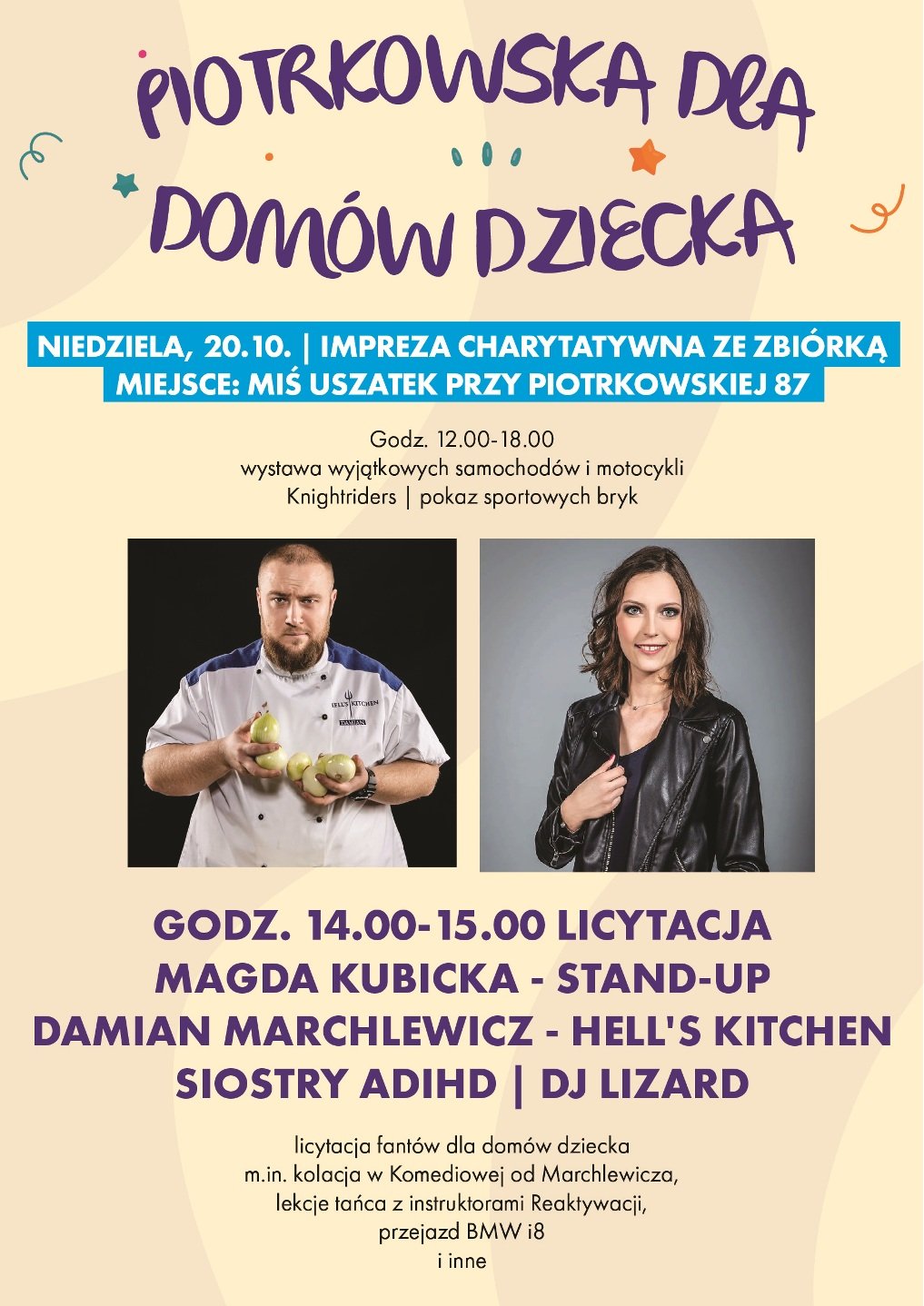 W niedzielę między 14.00 a 15.00 przy Piotrkowskiej 87 - obok Misia Uszatka - odbędzie się wielki finał akcji z udziałem sióstr ADIHD, stand-uperki Magdy Kubickiej, szefa kuchni Damiana Marchlewicza, zwycięzcy Hell's Kitchen oraz ekipy z Knight Riders Łódź. Będą oni zachęcać do udziału w licytacji i przekazywania datków dla dzieciaków.