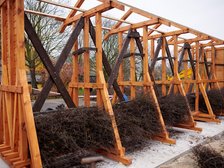Podstawowym tworzywem tężni solankowej są gałązki krzewu śliwa tarnina. To właśnie po nich spływa solanka, rozbijając się na mniejsze krople, a dzięki promieniom słonecznym i podmuchom wiatru powstaje mgiełka solankowa, rozwiewana wokół tężni, tworząc mikroklimat.