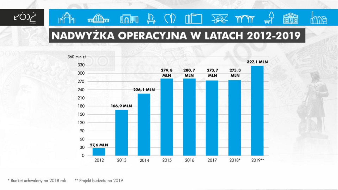 Skarbnik miasta zadowolony jest z wysokiego poziomu nadwyżki operacyjnej, która w 2019 roku wyniesie 327,1 mln zł.