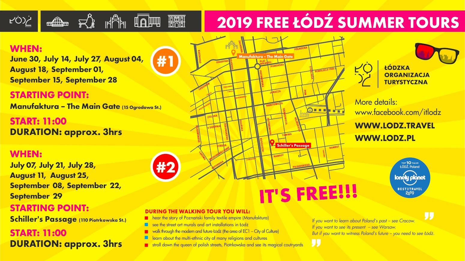 Wszystkie spacery są bezpłatne, organizowane przez Łódzką Organizację Turystyczną.