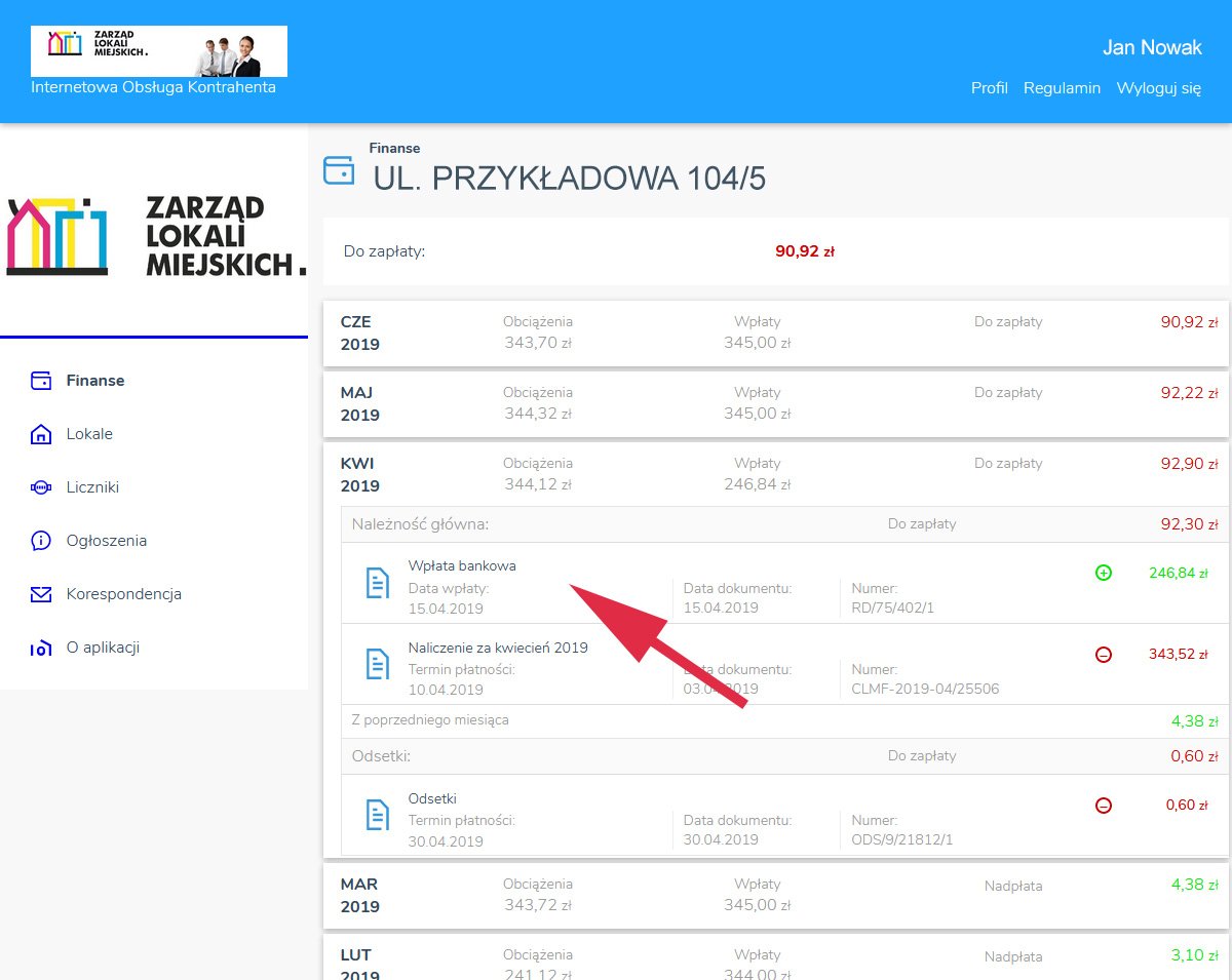 Ta funkcjonalność ma też inne plusy. Pozwala osobom, które starają się o bonifikatę z tytułu regularnego płacenia czynszu kontrolować, czy przypadkiem nie zdarzyła im się jakaś drobna niedopłata.