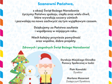 Z okazji Świąt Bożego Narodzenia życzymy Państwu spokoju, ciepła oraz wielu chwil, które wywołują szczery uśmiech i pozwalają na nowo zachwycić się tym wyjątkowym czasem.