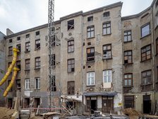 Artystyczne poddasze, ślepa ściana pełna okien i balkonów, a na podwórzu Targ Jaracza. Tak zmieni się rewitalizowana kamienica u zbiegu Kilińskiego i Jaracza.