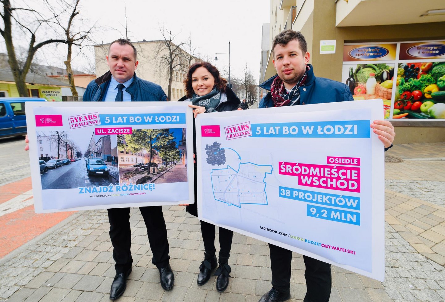Paweł Jędrachowicz, pełnomocnik prezydent Hanny Zdanowskiej ds. nowych narzędzi partycypacyjnych, mieszkaniec osiedla Śródmieście – Wschód i inicjator zmian m.in. na ul. Zacisze, Edyta Westrych-Maćkowiak, Zarząd Inwestycji Miejskich; Damian Raczkowski, przewodniczący. komisji ds. spraw budżetu obywatelskiego Rady Miejskiej