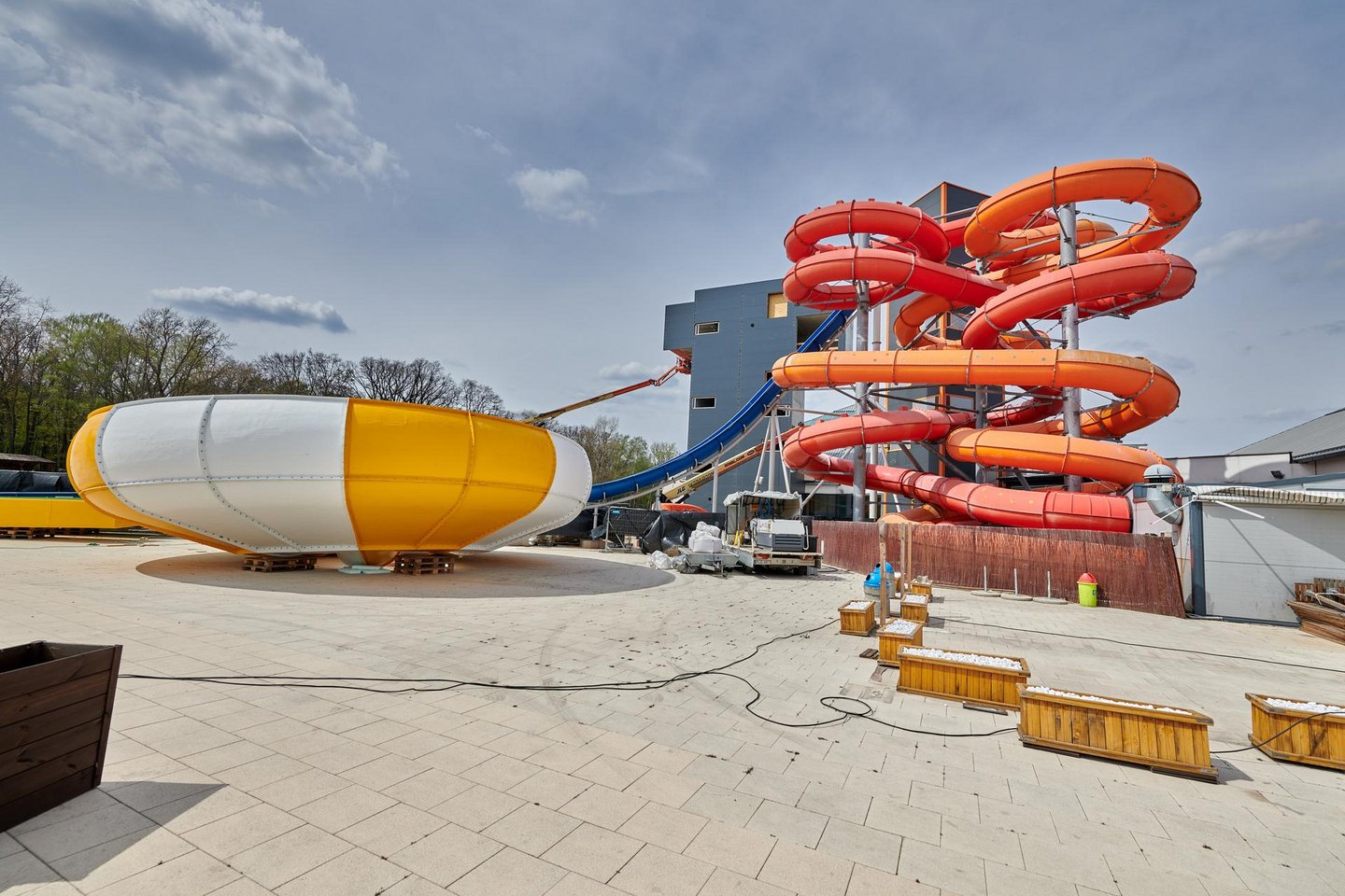 Rozpoczął się montaż gigantycznych zjeżdżalni na terenie aquaparku "Fala".