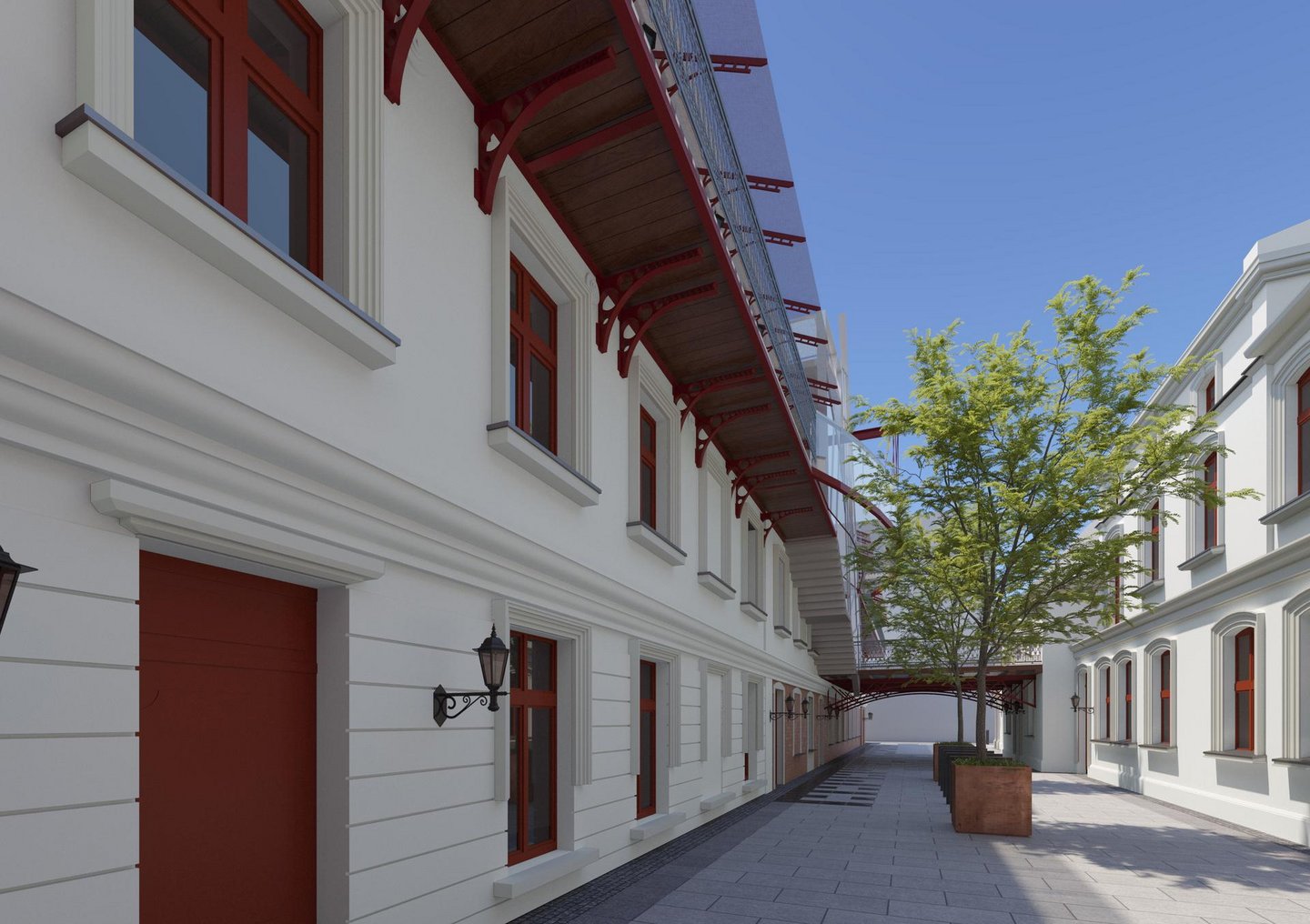 Piotrkowska 102 - wizualizacja - widok podwórka z poziomu przechodnia
