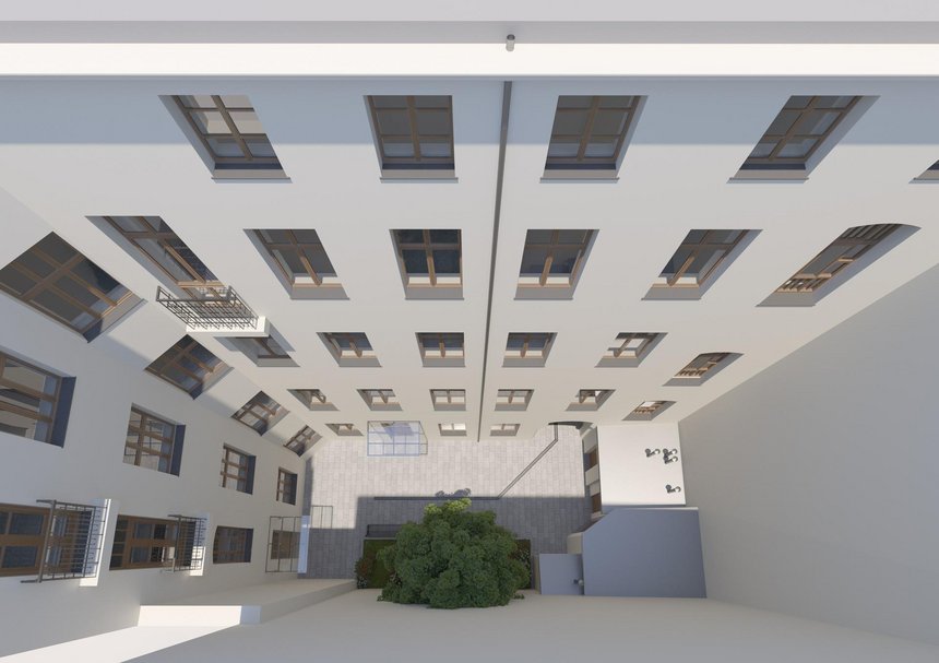 Podwórko kamienicy przy ul. Narutowicza 4 po remoncie - wizualizacja.