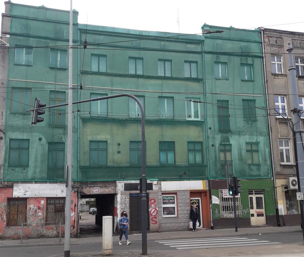 Zabezpieczenie siatką fasady kamienicy przy Limanowskiego 22