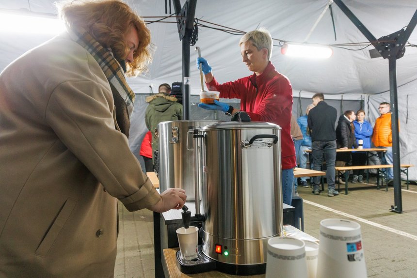 Namiot Pełen Ciepła przed główną siedzibą MOPS