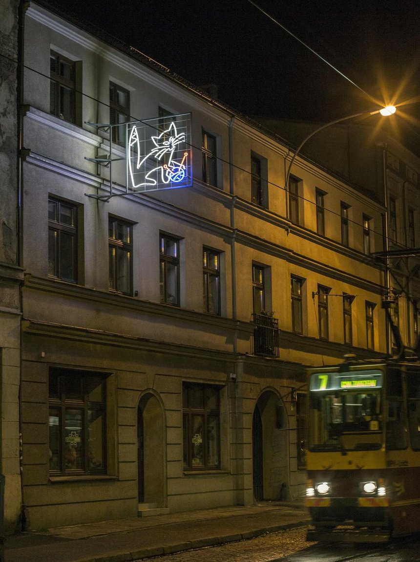 Neon z kotem wrócił na kamienicę przy ul. Legionów